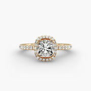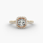 Cushion Cut Lab Grown Diamond Halo Ring with Pavé Band – 1 to 5 Carat Center | USA Crafted