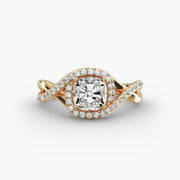 Cushion Cut Lab Grown Diamond Halo Engagement Ring | 1 to 5 Carat Center | USA Certified