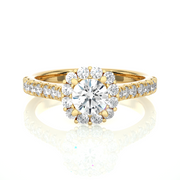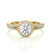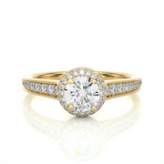 1.43 CT Round Lab Grown Diamond Halo Ring with Milgrain & Round Side Stones | 51 Stone Gold Band