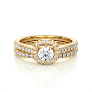 1.31 CT Round Diamond Halo Wedding Matching Band | 56 Stones
