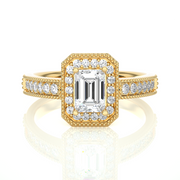 1.07 CT Emerald Halo Lab Grown Diamond Ring with Milgrain & Side Stones
