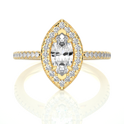 0.89 CT Marquise Halo Lab Grown Diamond Ring with Round Side Stones