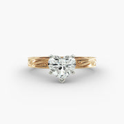 Heart Lab-Grown Diamond Ring ā 5-Prong Leaf Style | IGI Certified | 10K/14K/18K Gold