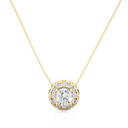 1.52 CT Lab-Grown Diamond Halo Pendant Necklace | Round Diamonds | Solid Gold
