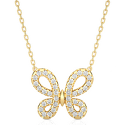 0.31 CT Lab-Grown Diamond Butterfly Pendant Necklace | Solid Gold | 38 Round Diamonds