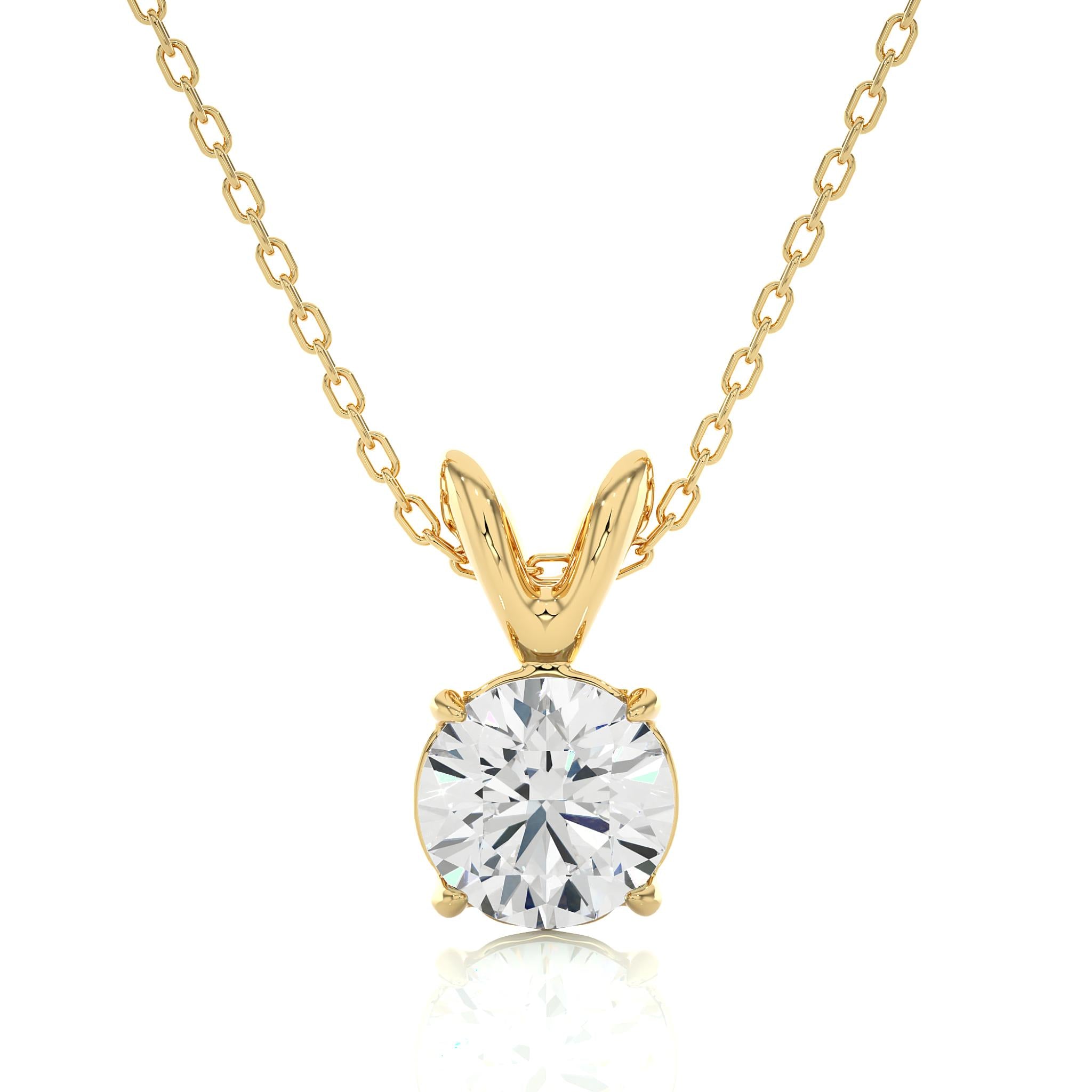 1.03 CT Lab-Grown Diamond Solitaire Pendant Necklace | Round Cut | 4-Prong | Solid Gold