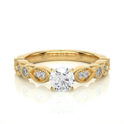0.67 CT Round Lab Grown Diamond Vintage Milgrain Ring | 13 Stone Gold Band