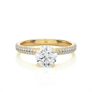 1 CTW Round Lab-Grown Diamond Engagement Ring with Three-Row Thin Pave Band E-F / VVS-VS
