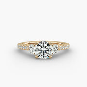 0.99 CT Round Center with Pear Side Lab Grown Diamond Three Stone Ring | 3 Stone Gold Band