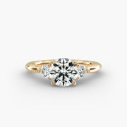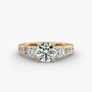 0.85 CT Round Center with Princess Cut Side Lab Grown Diamond Three Stone Ring | 13 Stone Gold Band
