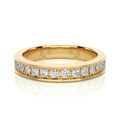 Make a statement with this 0.49 carat round-cut lab-grown diamond bold prong-set band, featuring 14 radiant diamonds in a slightly bolder prong setting for extra brilliance and presence. Each IGI-certified lab-grown diamond is ethically sourced and precision-cut to maximise sparkle. Available in 10K, 14K, or 18K solid gold, with options in white, yellow, or rose gold, this bold band is perfect for weddings, anniversaries, or as a striking stacking piece. 0.49 Carat Total Weight (14 Round Cut Diamonds) IGI-Certified Lab-Grown Diamonds Bold Prong Set Design for Enhanced Sparkle Available in 10K, 14K & 18K Solid Gold? Choice of White, Yellow, or Rose Gold Ethical, Sustainable & Conflict-Free Comfortable & Crafted for Everyday Elegance A refined, bold upgrade — combining timeless prong elegance with a confident, sparkling statement.
