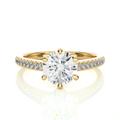 Shine with sophistication in this 1.47 carat total weight engagement ring, featuring a round lab-grown center diamond secured with a classic six-prong setting and micropave-set round diamonds along the sides. The combination of six-prong stability and micropave brilliance creates a luxurious and timeless ring perfect for engagements, weddings, or special milestones. Total Diamond Weight: 1.47 Carats (19 Stones) Diamonds: Round Lab-Grown Diamonds Color: E–F Clarity: VVS–VS Settings: Six-Prong Center + Micropave Side Diamonds Metal Options: 10K, 14K, or 18K Gold Gold Colors: White, Yellow, or Rose Certification: IGI Certified, sustainable & ethically crafted This six-prong center with micropave side diamond ring combines classic elegance and modern sparkle, making it a perfect symbol of enduring love.