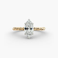 Elegant and distinctive, this marquise-cut lab-grown diamond engagement ring features a four-prong solitaire setting paired with a rope-inspired band. The elongated marquise diamond creates a stunning finger-lengthening effect, while the twisted cable-style band adds texture, strength, and a unique artisanal flair to the classic solitaire.
