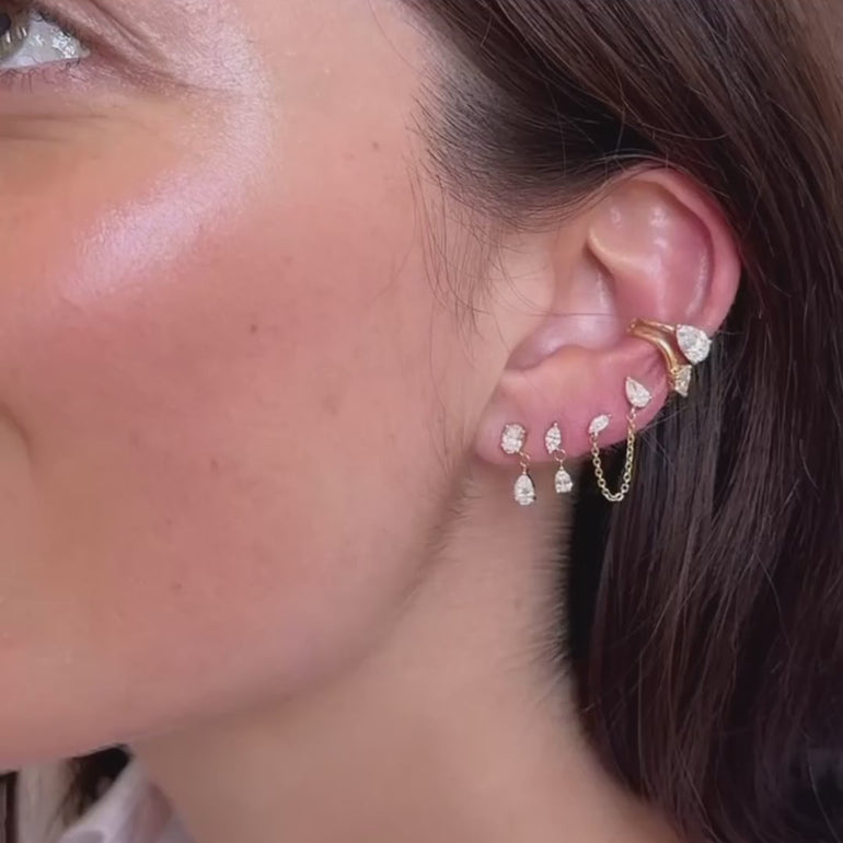 Marquise & Pear Lab-Grown Diamond Convertible Earrings Connector Chain Set 0.60 CTW – 4 Stones | Double Piercing Dangle | 10K, 14K, 18K White, Yellow & Rose Gold | IGI Certified