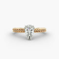 Classic elegance with artisanal detail — this Pear Shape Lab-Grown Diamond Ring features a sparkling teardrop diamond set on a twisted band with delicate milgrain edges, combining romantic symbolism with vintage-inspired texture. Perfect for engagements, anniversaries, or as a signature everyday piece.