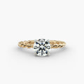 Classic sparkle with a unique twist. This round brilliant lab-grown diamond engagement ring is set in a rope-style (cable) solitaire band, adding texture and artistry to the timeless design. The round brilliant cut is prized for its unmatched fire and brilliance, while the rope detailing creates a distinctive, handcrafted look.